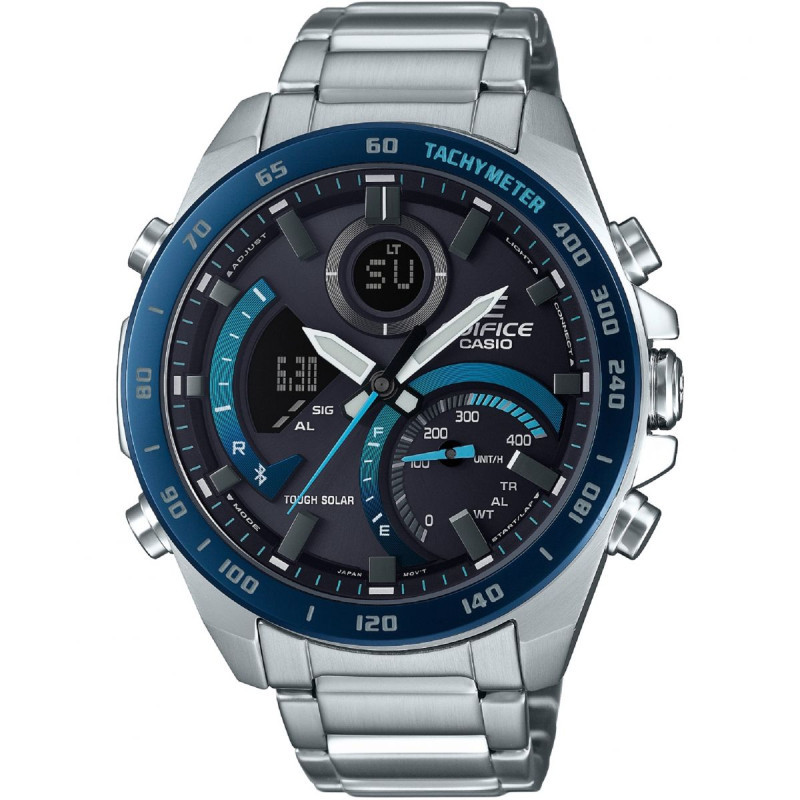 CASIO EDIFICE ECB-900DB-1BER комбинира елегантен дизайн от неръждаема стомана с високотехнологични функции за съвременния човек. Моделът разполага със соларна батерия, Bluetooth 4.0 свързаност със смартфон, Phone Finder и Smart Link функционалности. Speed Display позволява измерване на средна скорост, докато хронометърът и календарът осигуряват прецизен контрол на времето. С минерално стъкло, неонов дисплей и водоустойчивост 100 м, този EDIFICE е съчетание от стил, мощ и модерни технологии.