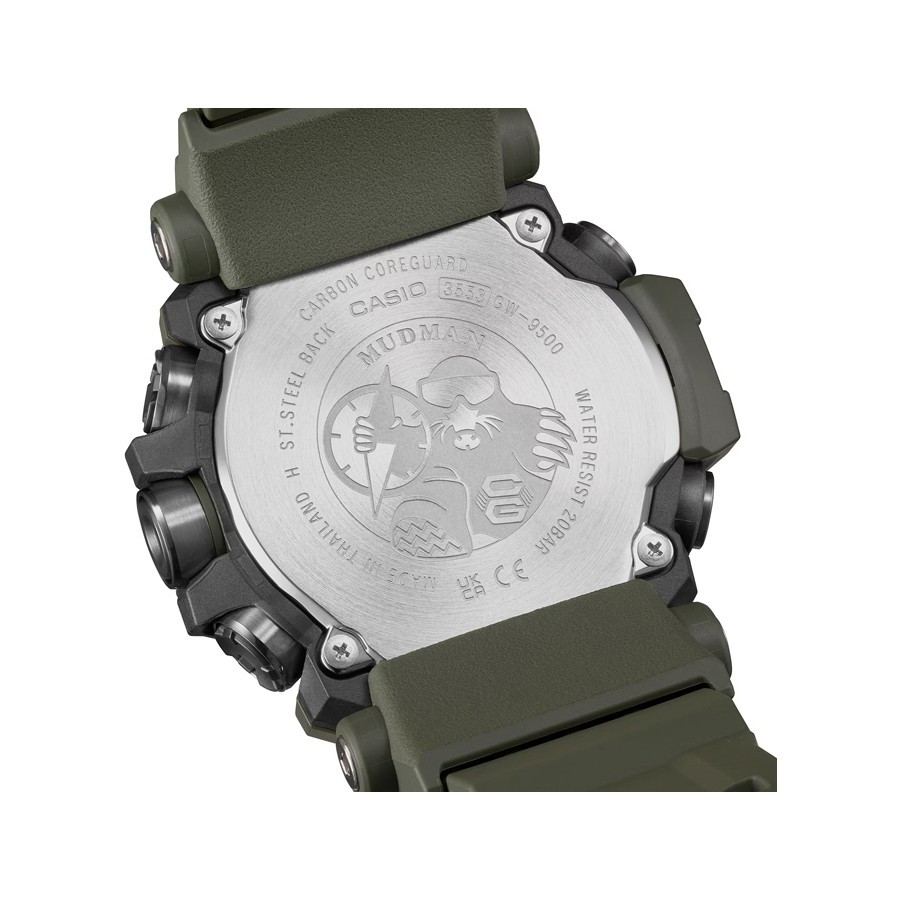 Casio G-Shock GW-9500-3ER от серията MUDMAN комбинира иновативна Triple Sensor технология (компас, барометър/алтиметър, термометър), радио сверяване и соларна батерия – всичко това в изключително здрава SHOCK конструкция. Идеален избор за екстремни условия, планински преходи и военни мисии.