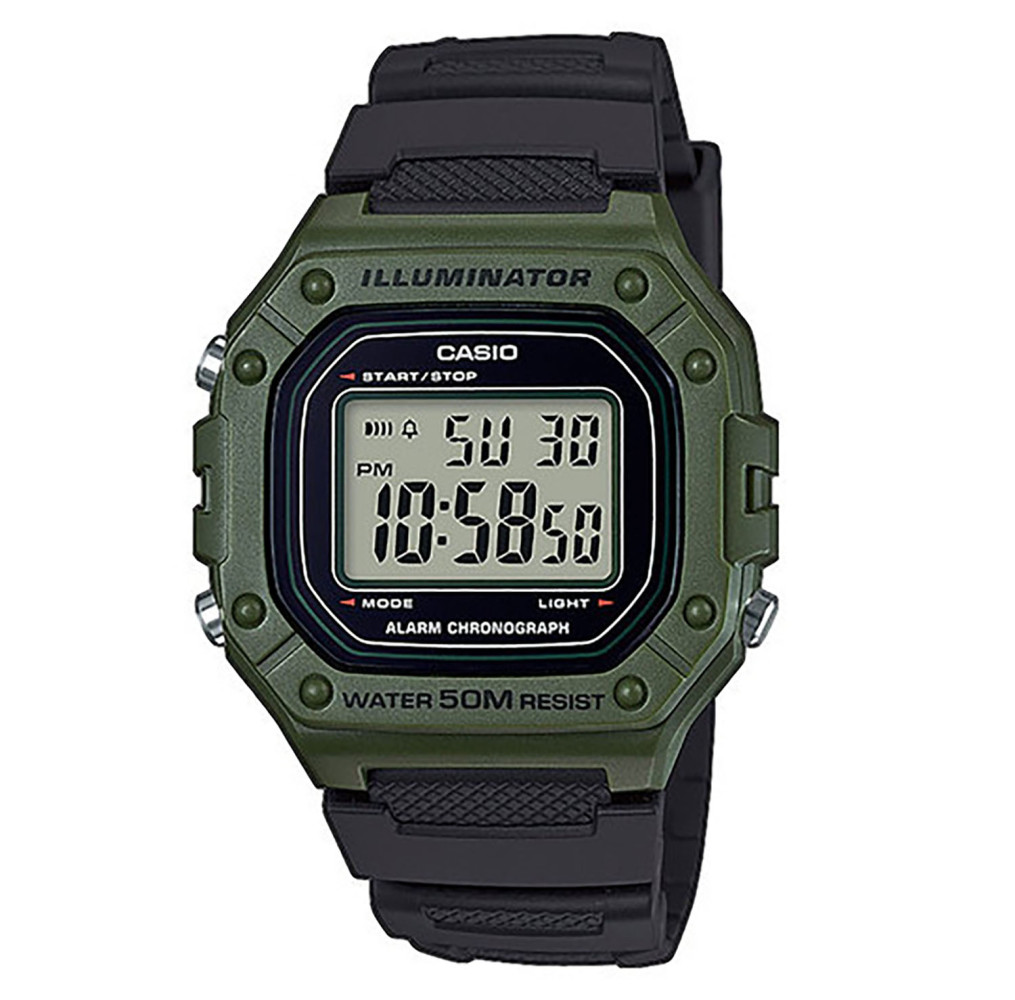 CASIO W-218H-3AVEF предлага класическа дигитална функционалност в съвременен дизайн. С автоматична LED подсветка, хронометър, пет аларми и здрав корпус, този модел е изключително подходящ за активното ежедневие и спорт.