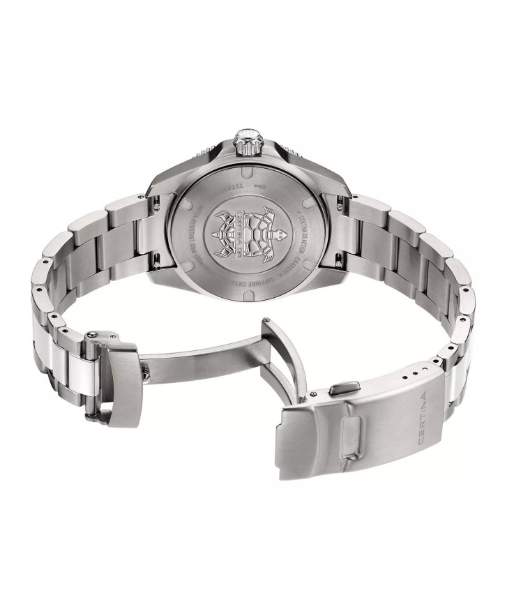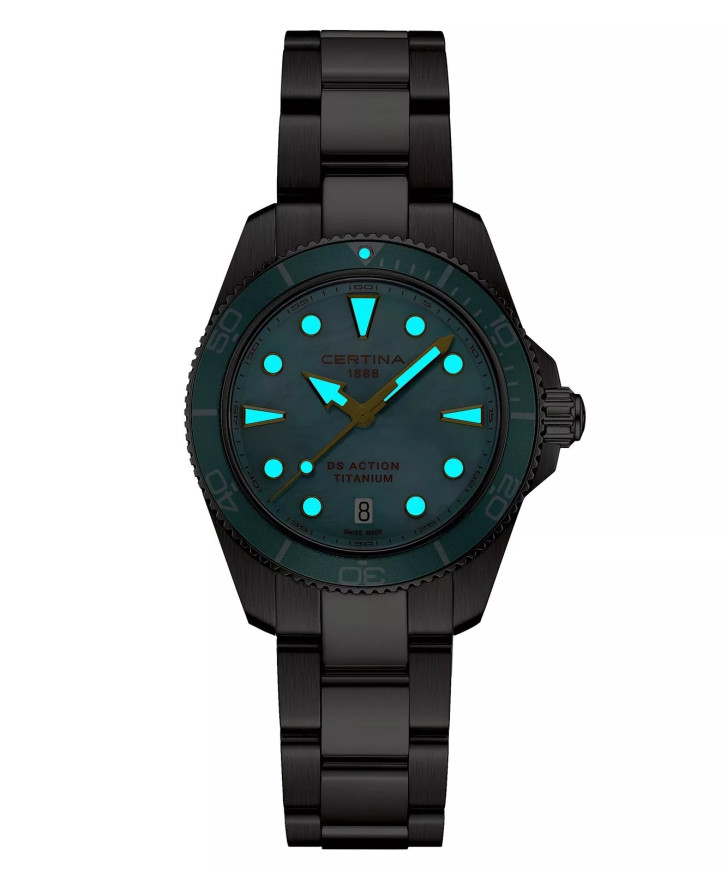 Часовник CERTINA DS Action Lady C048.210.44.131.00 е луксозен дамски модел с титаниев корпус и верижка, съчетаващ елегантност с професионална издръжливост. Със сертификат ISO 6425, водоустойчивост до 300 метра и швейцарски кварцов механизъм F05.412, този модел е подходящ както за гмуркане, така и за стилно ежедневно носене. Седефеният циферблат и леката конструкция от титан го превръщат в изящен избор за всяка активна жена.