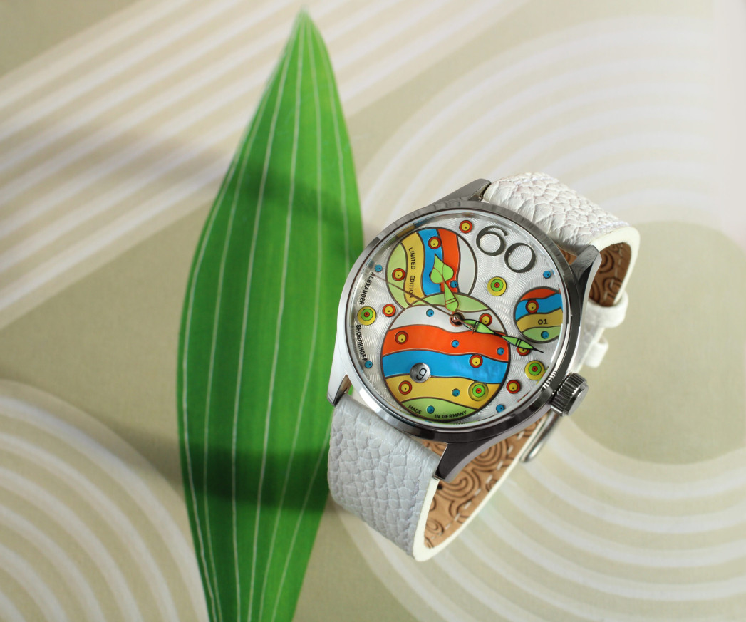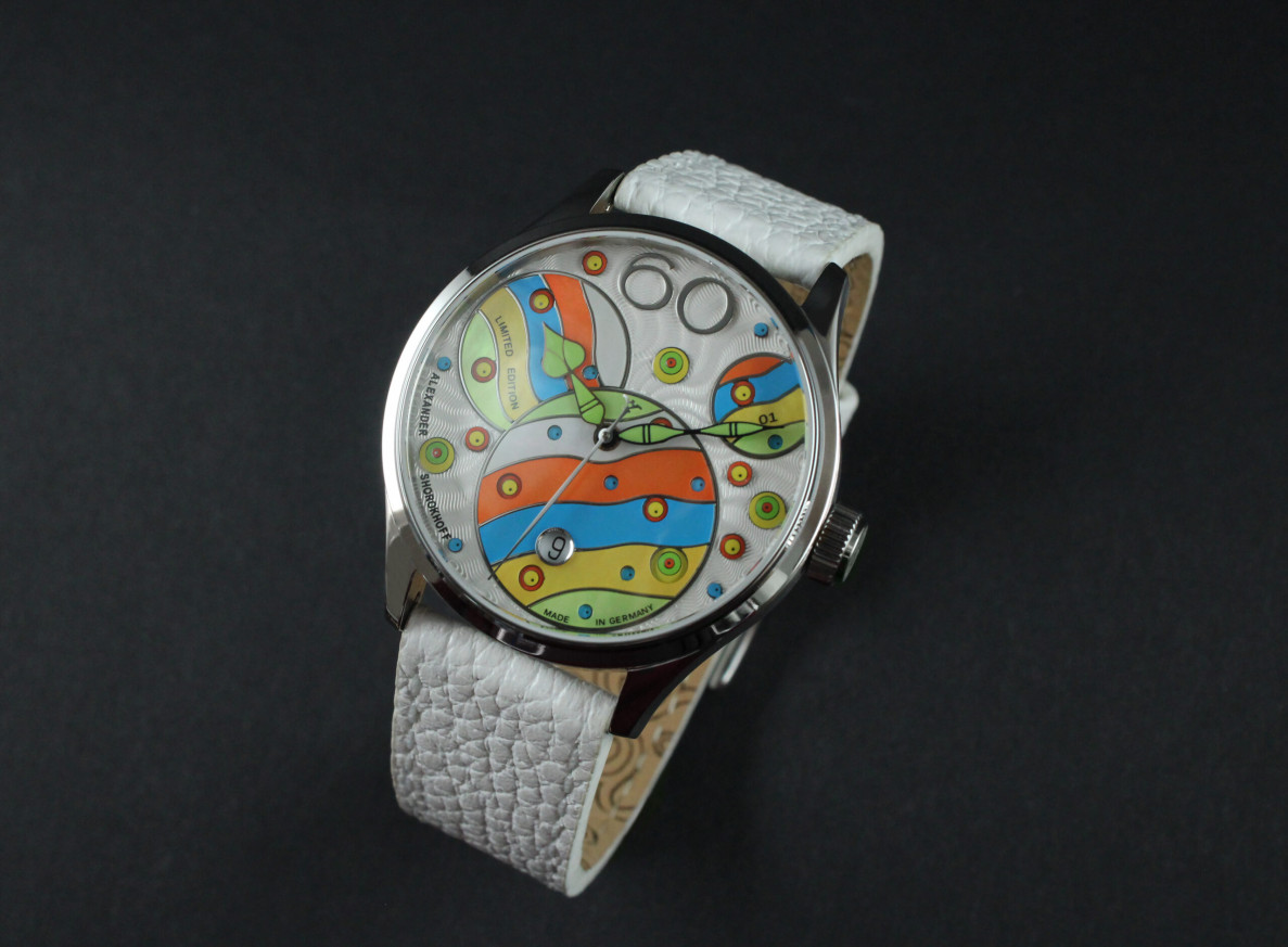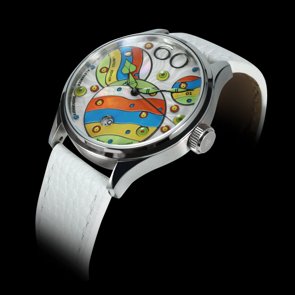 Моделът Crazy Balls 2 е създаден за хора с усет към изкуството и индивидуалността. Цветните сфери върху циферблата танцуват в хармония – някои са върху перла, други блестят в живи тонове, докато голямото “60” - емблема на Alexander Shorokhoff, завършва композицията.