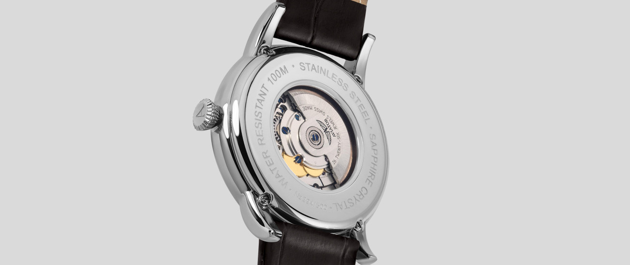 Ослепителните, огледално полирани повърхности са допълнени с ергономично изваяни линии, които осигуряват изключителен комфорт. Извивките на лъговете не само предават изтънчената естетика на миналото, но и гарантират перфектно прилягане на всяка китка. Всички корпуси на AVIATOR при създаването си изискват над 40 сложни операции.