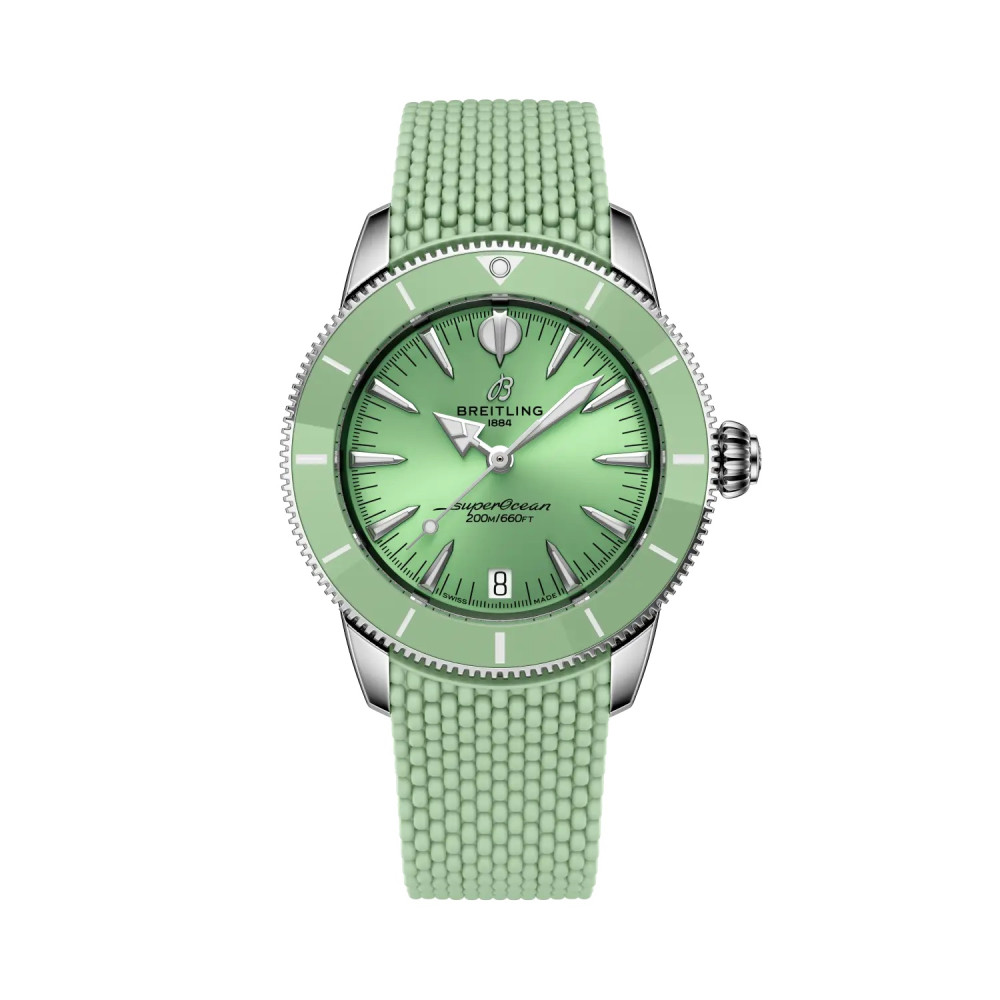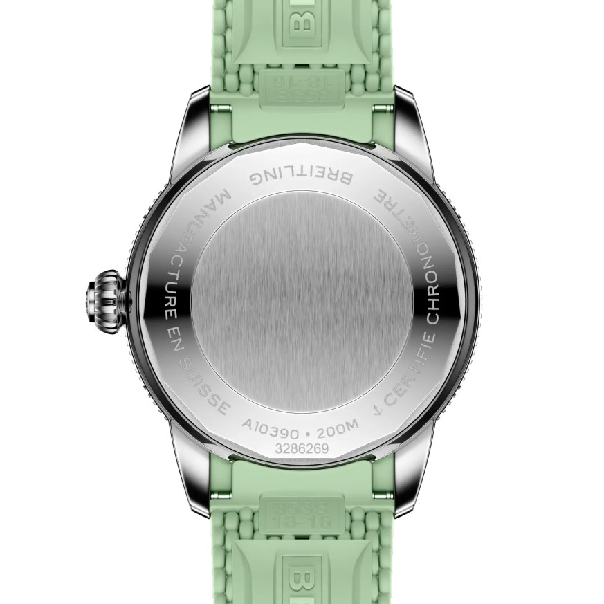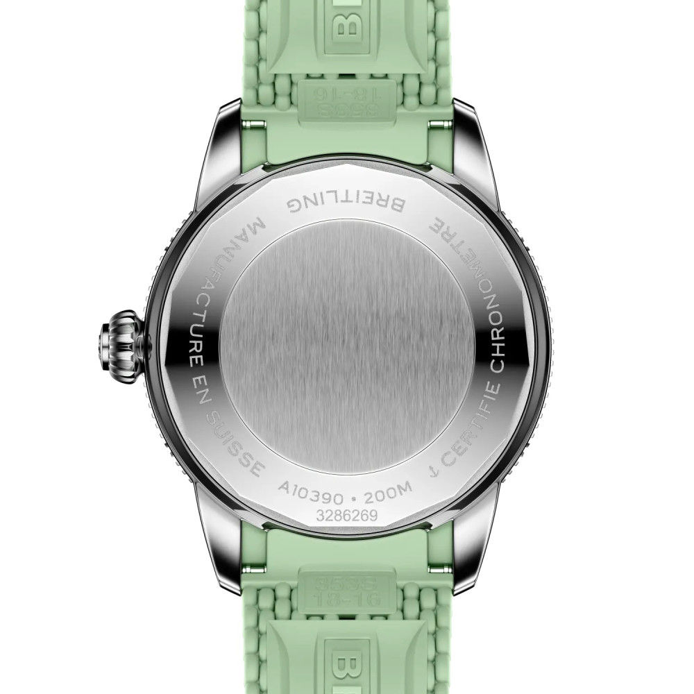 Часовник Breitling Superocean Heritage Automatic 36 A10390361L1S1 е елегантен дамски модел, съчетаващ класически дизайн и висока функционалност. С диаметър 36 мм и стилна зелена гумена каишка, той предлага комфорт и модерен облик. Благодарение на автоматичния механизъм Breitling 10 и водоустойчивост до 200 м, този модел е създаден за активния живот, без компромис с лукса. Сапфирено стъкло и корпус от благородна стомана го превръщат в отличен избор за жени с вкус към качество.