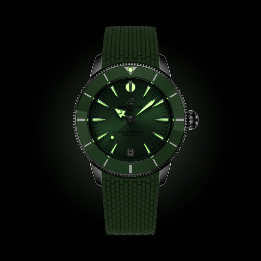 Циферблат Зелен / Дата н ашест часа / Стрелки и индекси Super-LumiNova®