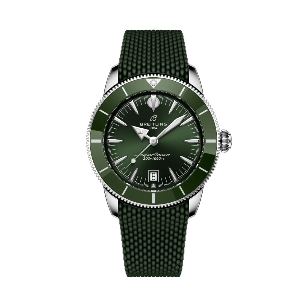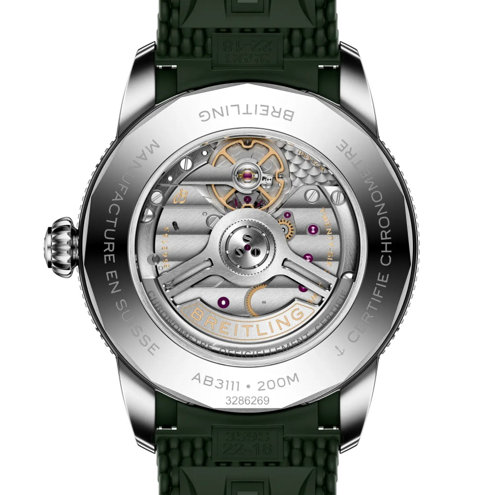 Breitling Superocean Heritage B31 Automatic 42 AB3111361L1S1 комбинира спортен дух и изискан стил в елегантен корпус от 42 мм. С инхаус механизъм B31, впечатляващ резерв от 78 часа и характерен зелен циферблат, този модел е отличен избор за всекидневие и приключения. Каишката от зелена гума и водоустойчивостта до 200 метра го превръщат в истински швейцарски инструмент с характер.