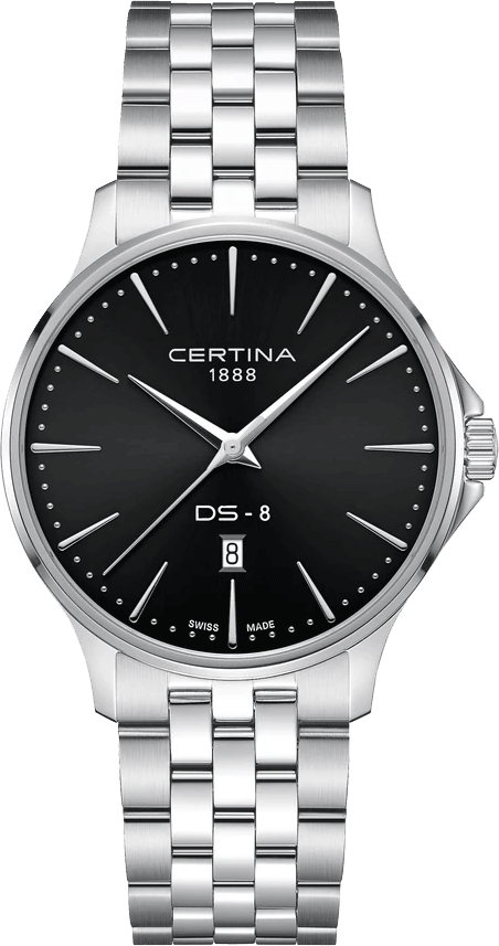 Часовник Certina DS-8 Gent C045.410.11.051.00 е класически мъжки кварцов модел с черен циферблат, сапфирено стъкло и корпус от 316L стомана. С прецизен механизъм F05.412, End of Life индикатор и водоустойчивост до 100 м, той е стилен и надежден избор за всяко ежедневие.