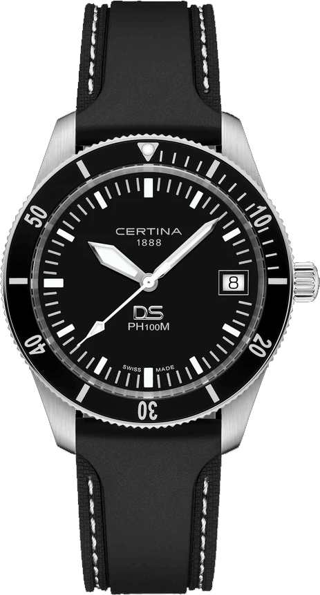 Часовник Certina DS PH100M C044.410.17.050.00 е спортно-елегантен кварцов модел с черен циферблат, алуминиев безел и висококачествена каучукова каишка. С водоустойчивост до 100 м, сапфирено стъкло и система Precidrive™, този часовник е създаден за динамичния градски стил с швейцарска прецизност.