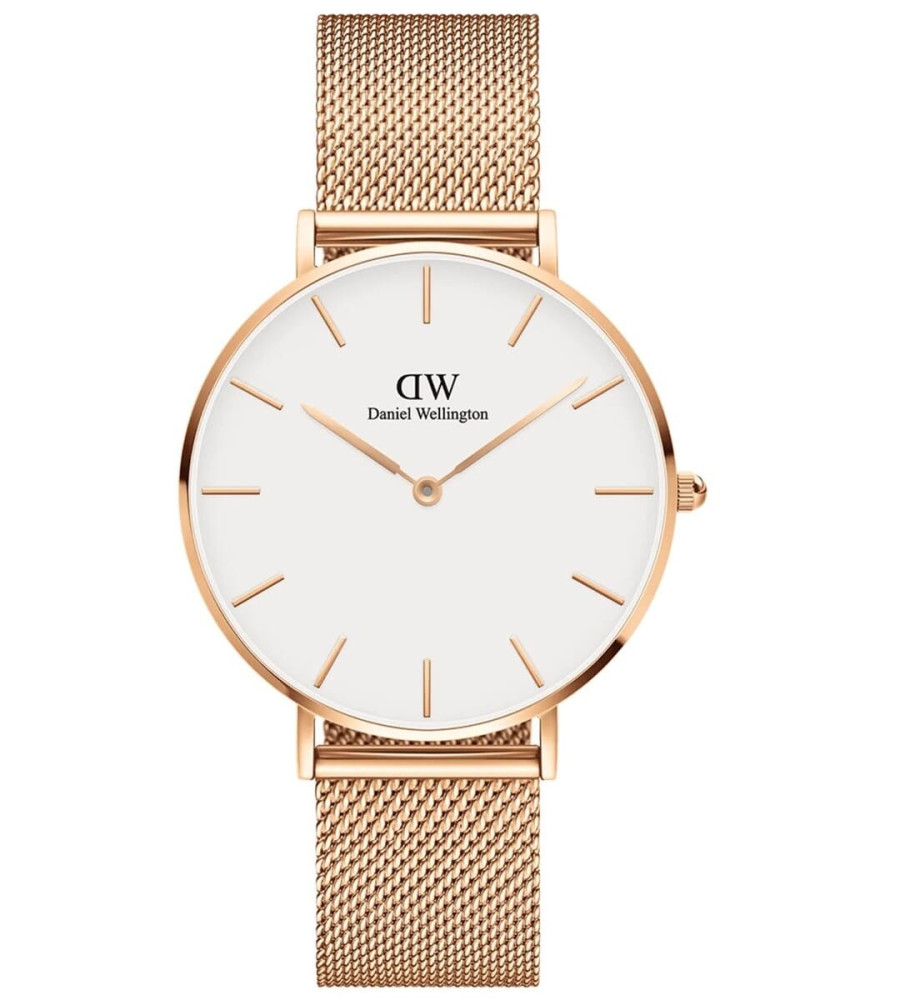 Petite Melrose разполага с плетена верижка от неръждаема стомана в златисторозово и циферблат в бял цвят. Изработен от полирана неръждаема стомана, проектиран да направи деликатно, но привличащо вниманието изявление. Часовник, който задава тон за всеки повод.