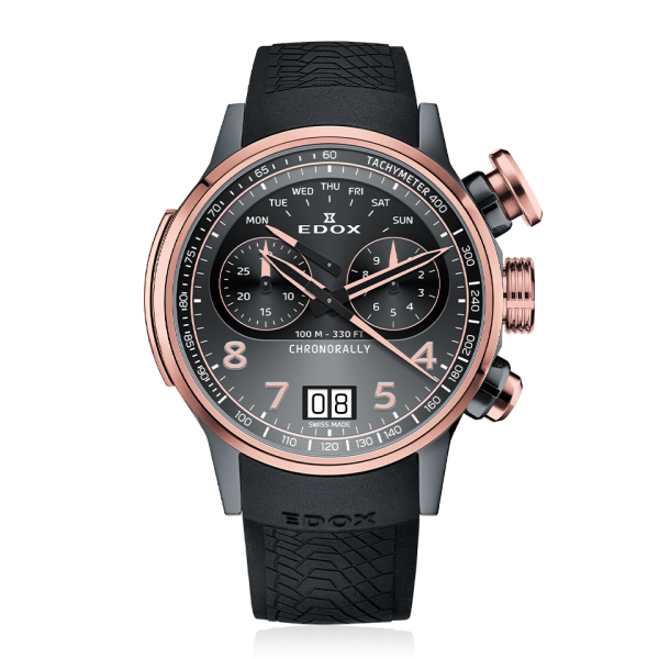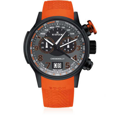 Часовник Edox Chronorally Chronograph 38003 TINGR GNR е мъжки спортен модел, създаден за шофьори и адреналинови натури. Сив титаниев корпус, голям бутон за хронографа, каучукова каишка и кварцов механизъм с Big Date функция правят този модел надежден партньор в екстремни условия.