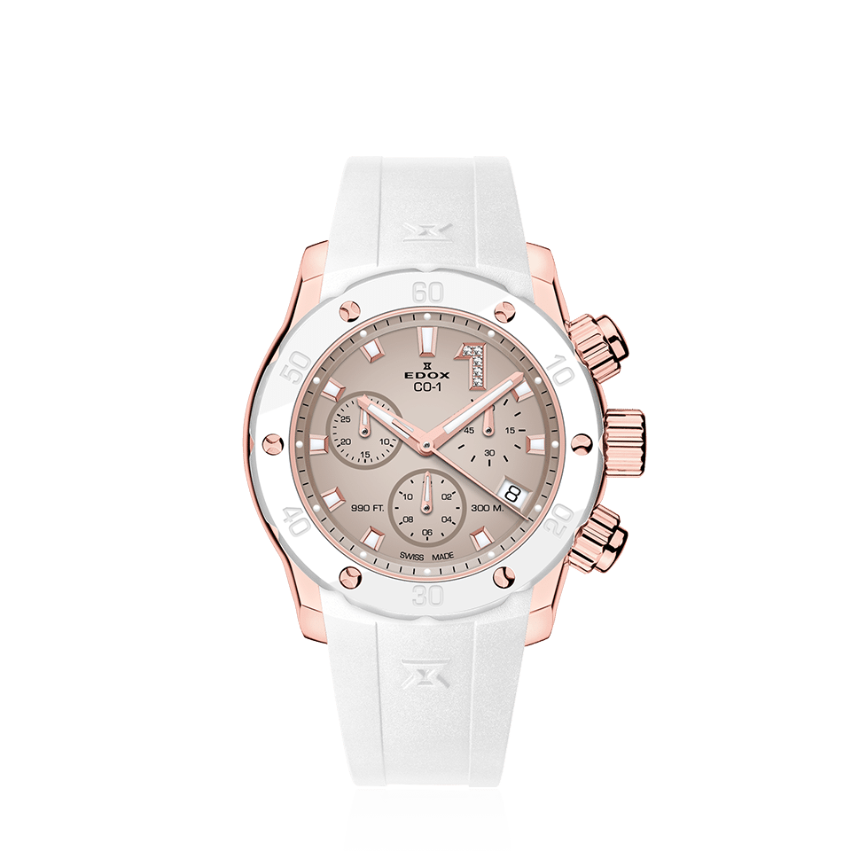Часовник Edox CO-1 Chronolady 10255 37RBCAB BEIDR е дамски спортно-елегантен модел с кварцов механизъм, хронограф и водоустойчивост до 300 м. С корпус с розово IP покритие, въртящ се керамичен безел и бежова кожена каишка, моделът съчетава женственост и функционалност в стилен швейцарски дизайн.