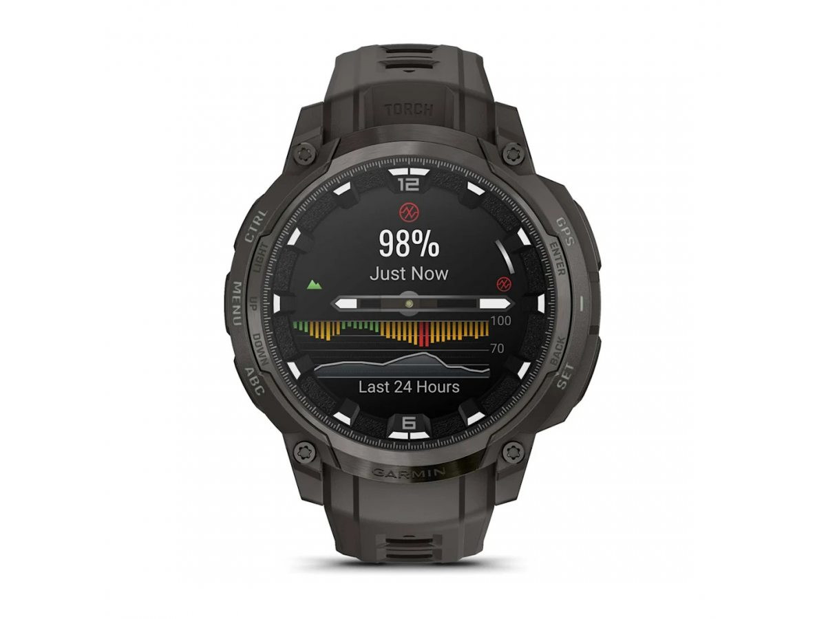 С цветен 1,2-инчов дисплей, аналогови стрелки, вградено фенерче и още много други – Instinct Crossover AMOLED е здравият GPS смарт часовник, готов за всичко.