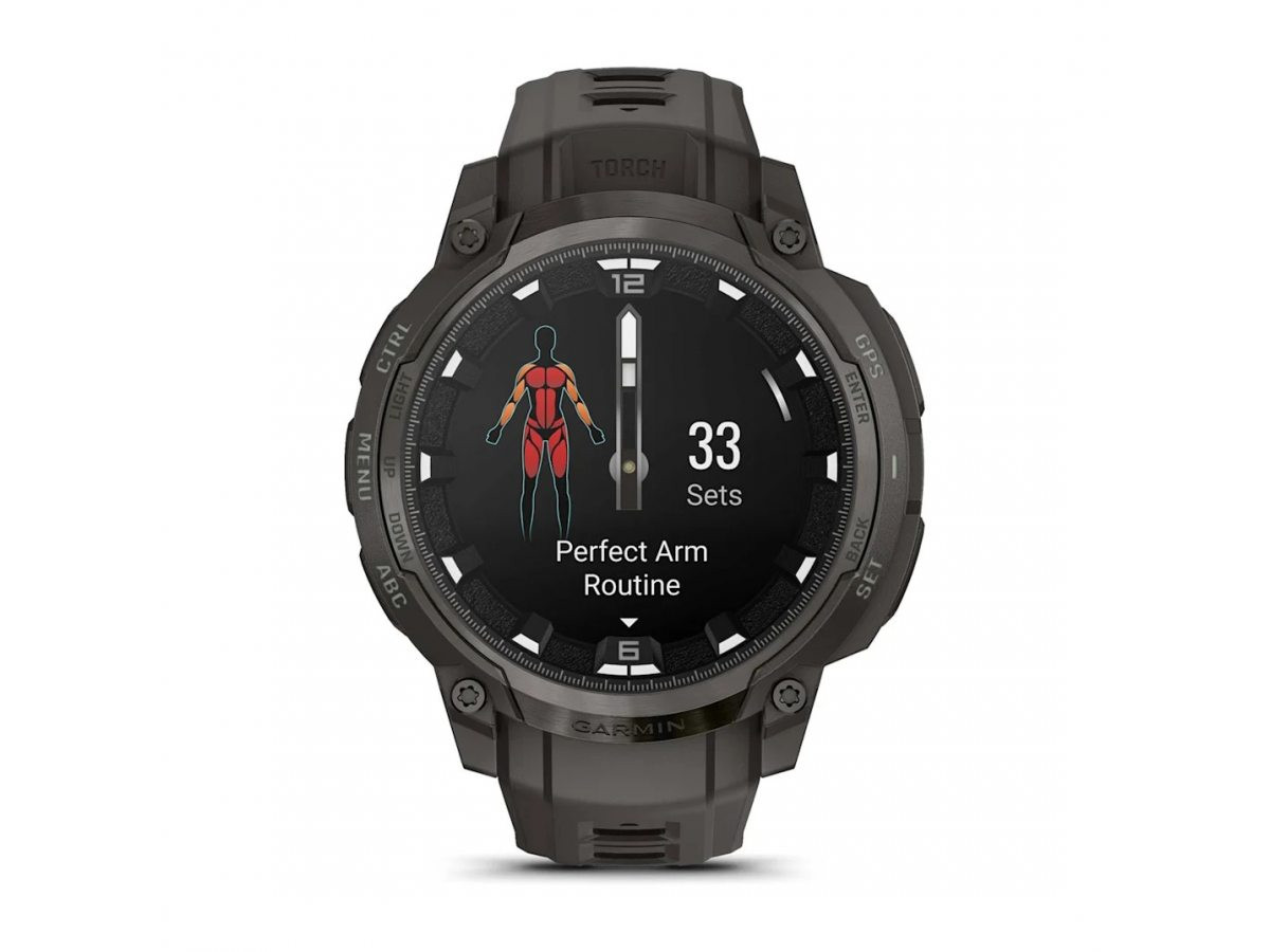 Garmin Instinct Crossover AMOLED Charcoal 010-03398-00 е здрав и тактически GPS смарт часовник с аналогови стрелки и 1,2” AMOLED дисплей. Вградено LED фенерче, двуслоен метален безел, сапфирено стъкло, MIL-STD издръжливост и 24/7 мониторинг на здравето с Pulse Ox, HRV и сърдечен ритъм. Включва функции за спорт и фитнес като HIIT тренировки, Garmin Coach, създаване на тренировки, multi-band SatIQ™ GPS. До 14 дни живот на батерията и до 18 дни в режим за пестене. Перфектен за приключения, тренировки и outdoor активности.