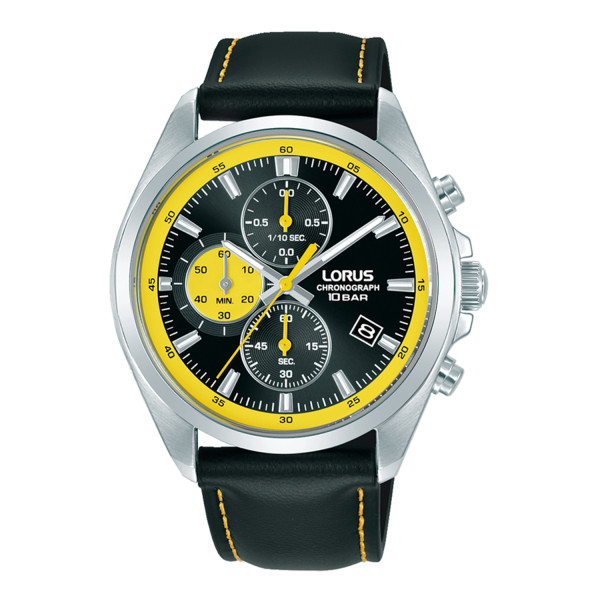 Часовник Lorus с кожена каишка и кварцов механизъм е стилен спортен модел с тъмен циферблат, тахиметър, хронограф и устойчив корпус от благородна стомана. Подходящ за активни мъже и ежедневна употреба.