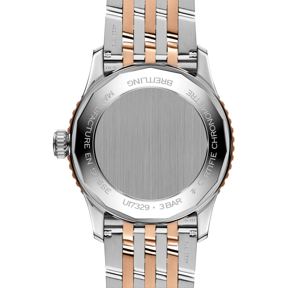 Часовник Breitling Navitimer Automatic 41 U17329F41G1U1 съчетава класическата автентичност на емблематичната колекция с луксозна изработка. Корпусът и верижката комбинират стомана и 18К розово злато, докато шампанското циферблатно оформление със златни стрелки и индекси придава изключителна елегантност. Автоматичният механизъм Breitling 17 е COSC сертифициран и предлага минимум 38 часа резерв на енергия. Двупосочният безел със slide rule функция позволява практични математически изчисления. Перфектен избор за мъже, ценящи история, престиж и прецизност.