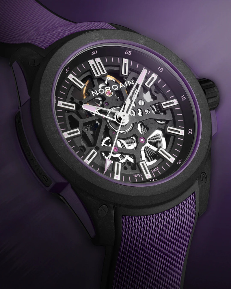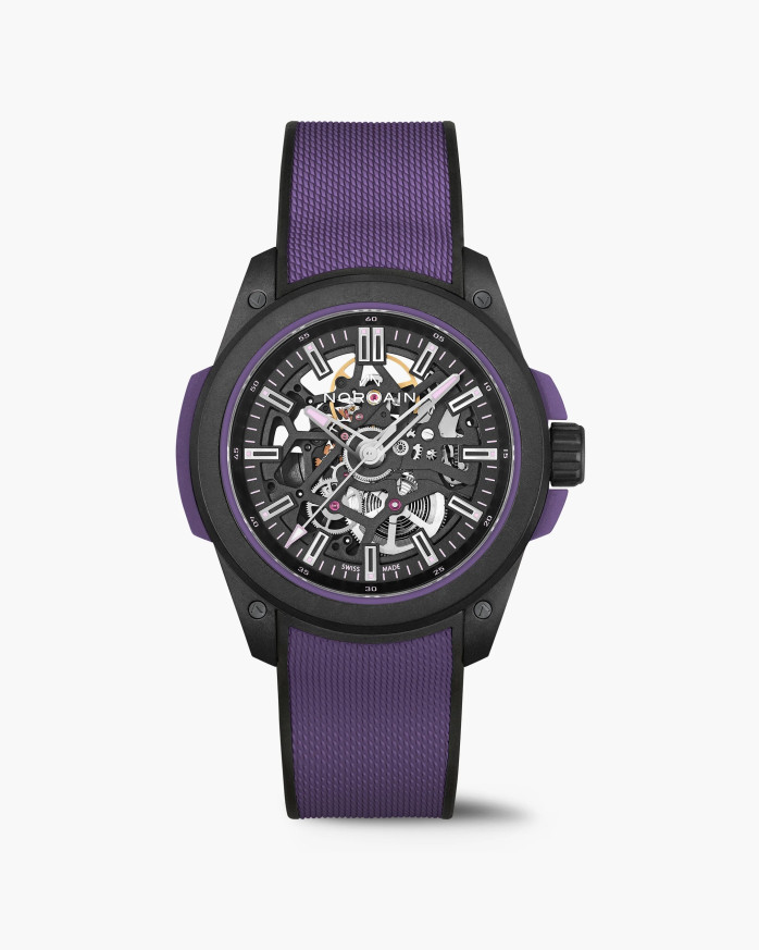 Изработен от патентования материал NORTEC® на NORQAIN – известен със своята изключителна здравина и лекота – новият Wild ONE 42mm в лилаво преdefинира представата за спортен часовник.