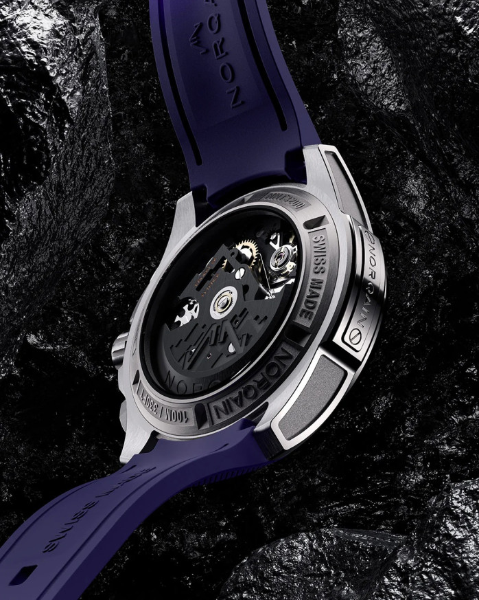 Гръб на касата Прозрачен сапфир, титаниев ринг, гравиран логотип NORQAIN