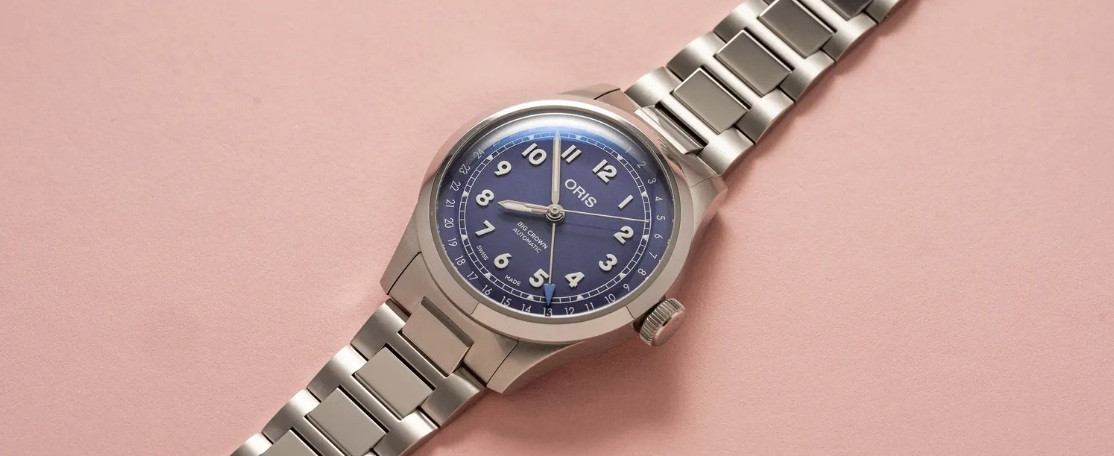 Часовник Oris Big Crown Pointer Date 01 754 7798 4068-07 8 20 06 впечатлява с изискан лилав циферблат и емблематичната Pointer Date функция. Изработен от благородна стомана с диаметър 40 мм и куполно сапфирено стъкло, този модел съчетава класика и модерна елегантност. Автоматичният механизъм Oris Calibre 754-1 осигурява 41 часа резерв на мощност, а стоманената H-link верижка гарантира комфорт и стил. Символ на безвременен швейцарски дизайн и съвършенство.