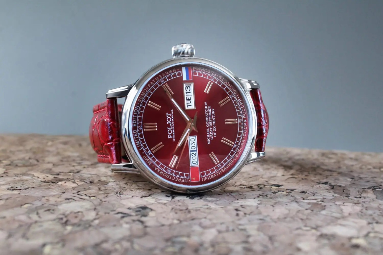 През октомври 2025 г. марката отново представи още един цветен акцент в тази колекция: новият модел блести в яркочервено. Червено – цветът на съветската революция, пионерския дух и промяната. В Poljot International Gorbatchov Limited Edition червеният циферблат символизира именно тази смелост, динамика и енергия, които поведоха света към нова ера. С този часовник марката съчетава вечната елегантност с мощната символика на червения цвят, създавайки изявление, което не само измерва времето, но и вдъхва живот на историята.
