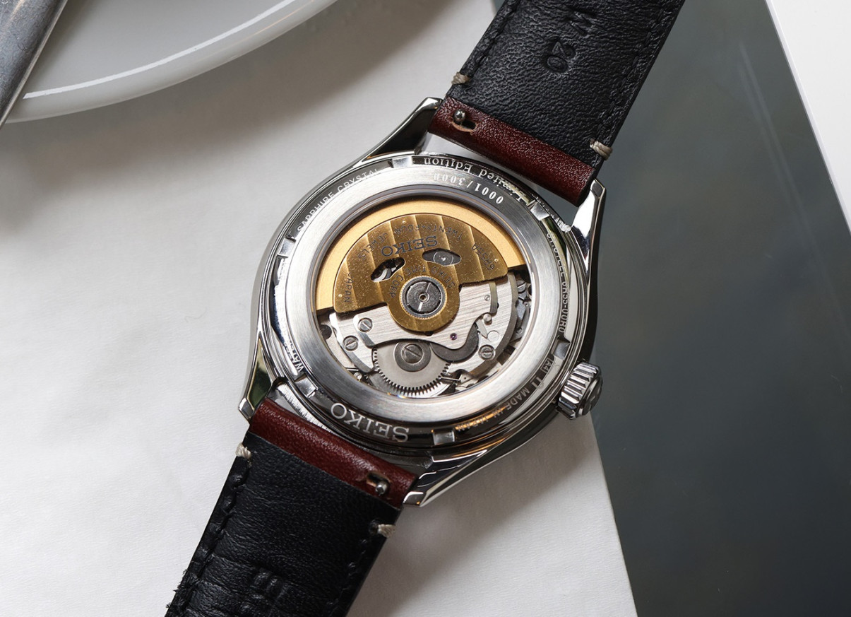 Автоматичният механизъм 6R55 осигурява 72 часа резерв на хода, а сапфиреното стъкло гарантира издръжливост и оптична яснота.