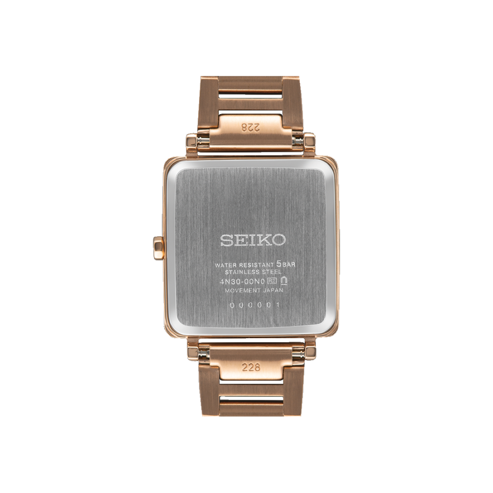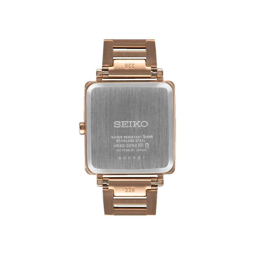 Seiko SWR112 е елегантен женски часовник с кварцов механизъм 4N30 и точност ±15 секунди на месец. Компактен корпус 25.1 мм с дебелина 6.4 мм и Hardlex кристал осигурява издръжливост и стил. Верижката с трикратно закопчаване и бутон осигурява сигурност. Часовникът е водоустойчив до 5 bar и магнитно устойчив до 4,800 A/m, тежи 62 грама и е идеален за ежедневна употреба. Перфектен баланс между елегантност и надеждност.