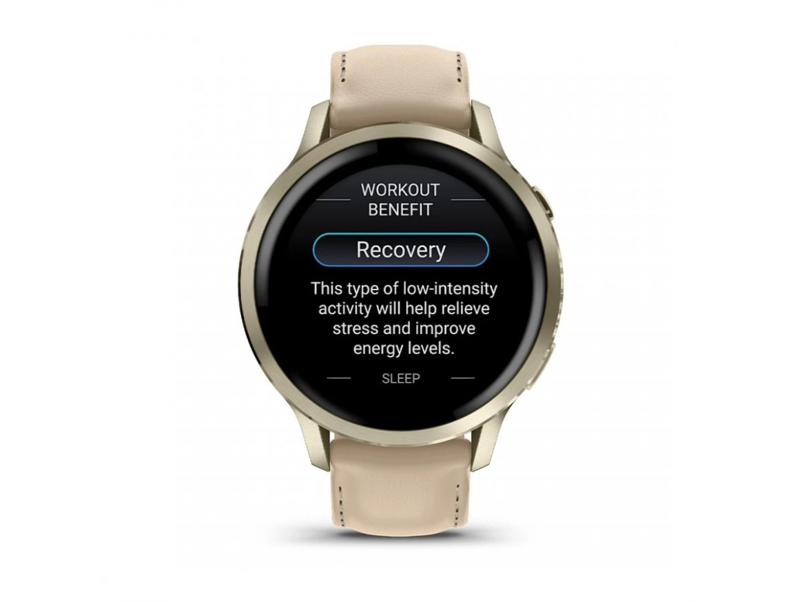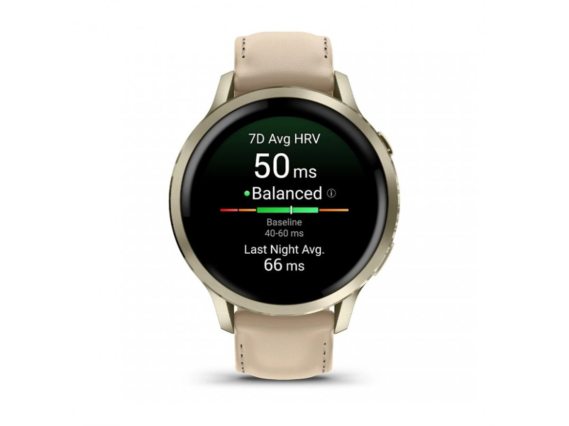 Garmin Venu 4 41mm Lunar Gold/Light Sand е GPS смарт часовник с 1,2” AMOLED дисплей и до 10 дни живот на батерията. Предлага 24/7 мониторинг на здравето с Body Battery™, Pulse Ox и HRV, проследяване на женското здраве и Health Status. Включва над 80 спортни приложения, Garmin Coach, анимирани тренировки, LED фенер, смарт известия, Garmin Pay и музика. Стилен и елегантен, този часовник е идеален за фитнес, ежедневие и активен начин на живот.
