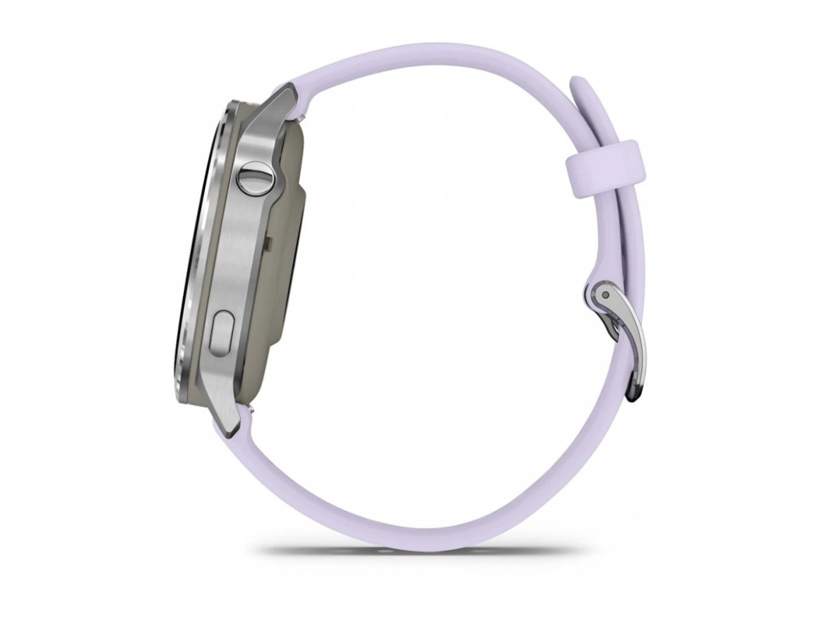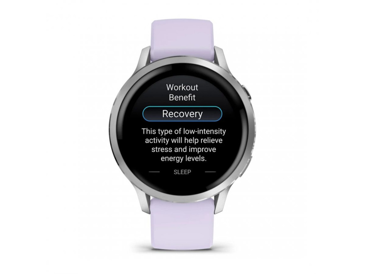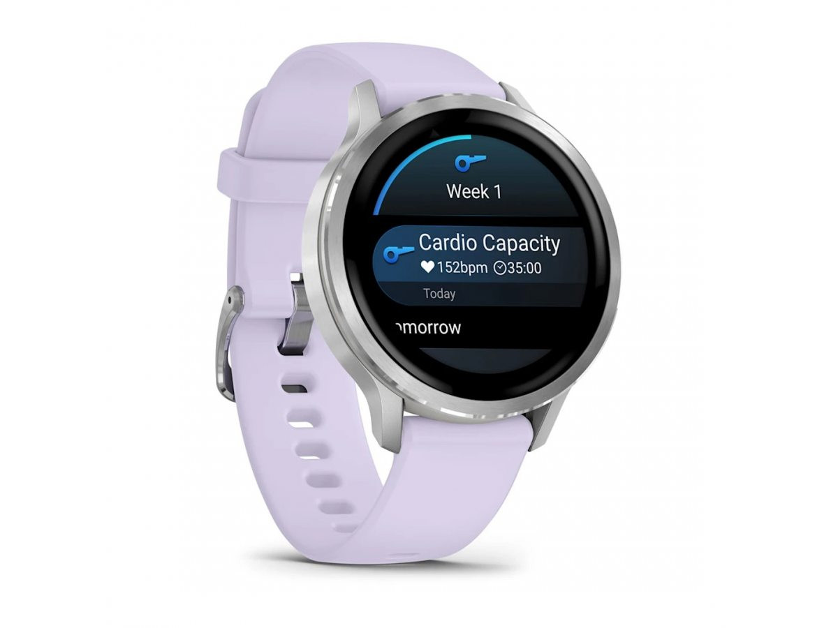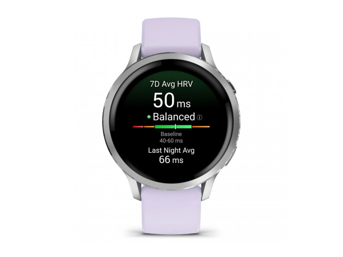 Garmin Venu 4 41mm Silver/S Periwinkle е GPS смарт часовник с 1,2” AMOLED дисплей и до 10 дни живот на батерията. Осигурява 24/7 мониторинг на здравето с Body Battery™, Pulse Ox, HRV и проследяване на женското здраве. Разполага с над 80 спортни приложения, Garmin Coach, анимирани тренировки, LED фенер, смарт известия, Garmin Pay и музика. Компактен, стилен и функционален, този часовник е идеален за активен начин на живот, фитнес и ежедневие.