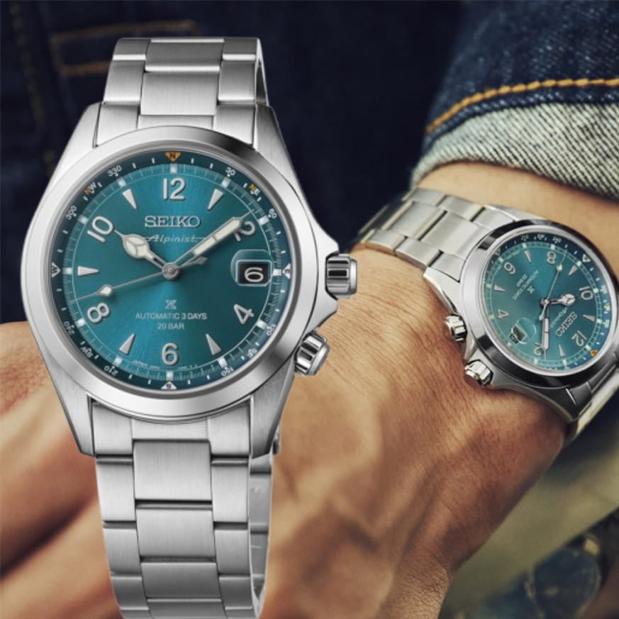 Seiko Prospex Alpinist SPB503J1 е вдъхновен от емблематичния дух на японските планини и се превръща в идеален спътник за пътешественици. Изумрудено синият циферблат, напомнящ дълбоките ледени езера, придава неповторим характер.