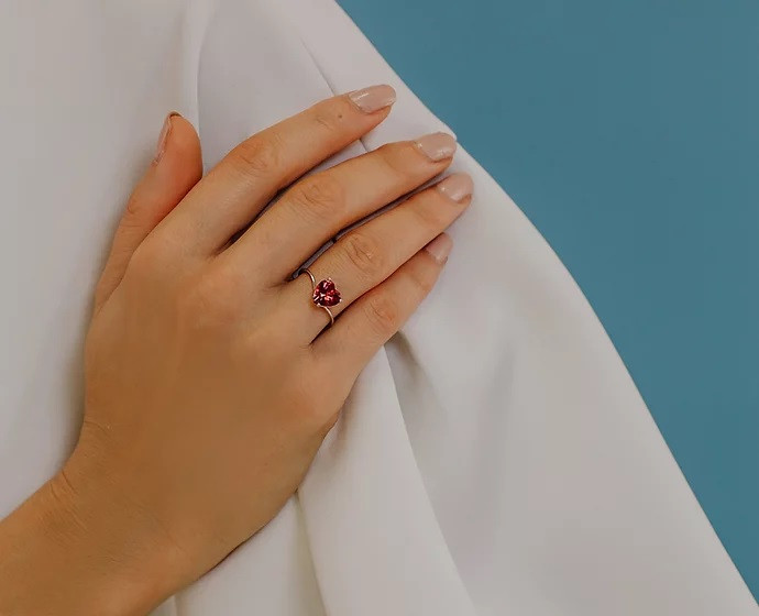 • ПРЕКРИСТАЛИЗИРАН РУБИН ВЪВ ФОРМАТА НА СЪРЦЕ -8ММ, 2,1Ct.