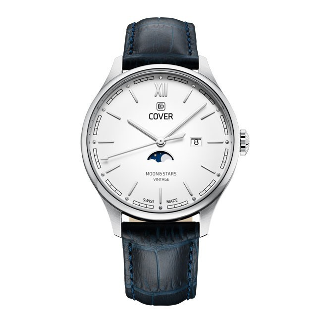 Часовник COVER CO202.01 – Мъжки швейцарски модел с бял циферблат и лунна фаза от колекция Chapman Moon & Stars