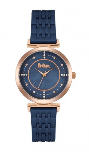 Елегантен дамски часовник Lee Cooper със седефен аналогов дисплей с декорация от нежни кристали. Корпус и верижка изработени от супер метал. Стъкло минерал-кристал. Моделът се задвижва от кварцов механизъм. Водоустойчивост 3 ATM - допускат се леки пръски, не се препоръчва обилно мокрене.