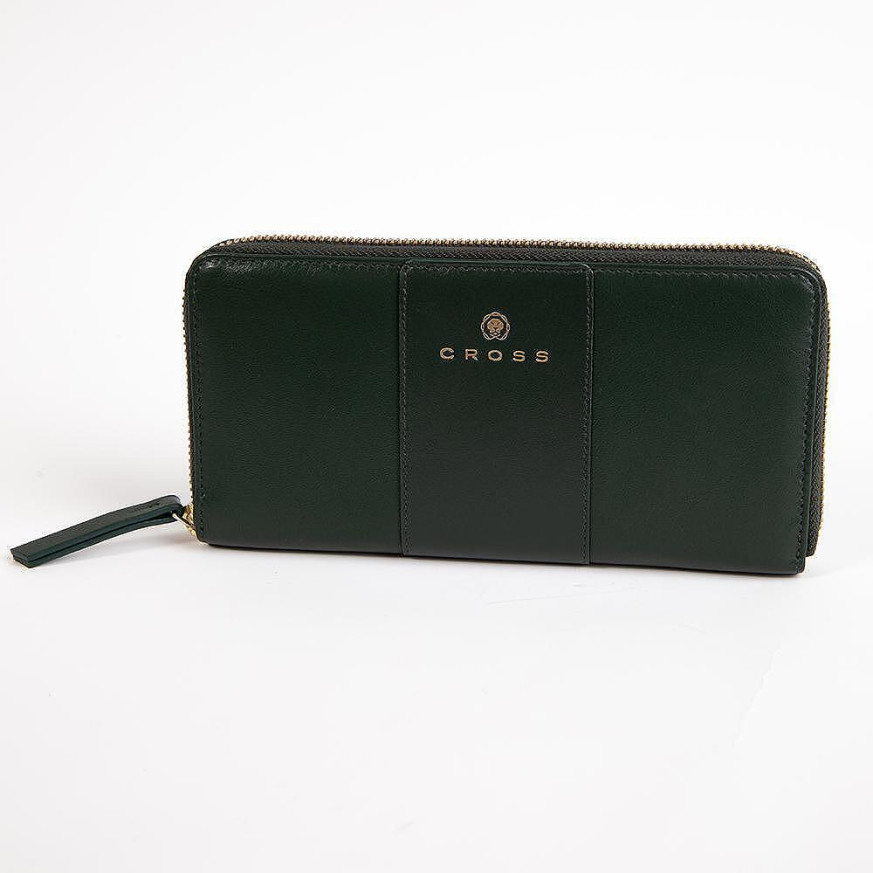 Елегантен дамски портфейл Cross, от колекция Kelly Wall, в зелен цвят.