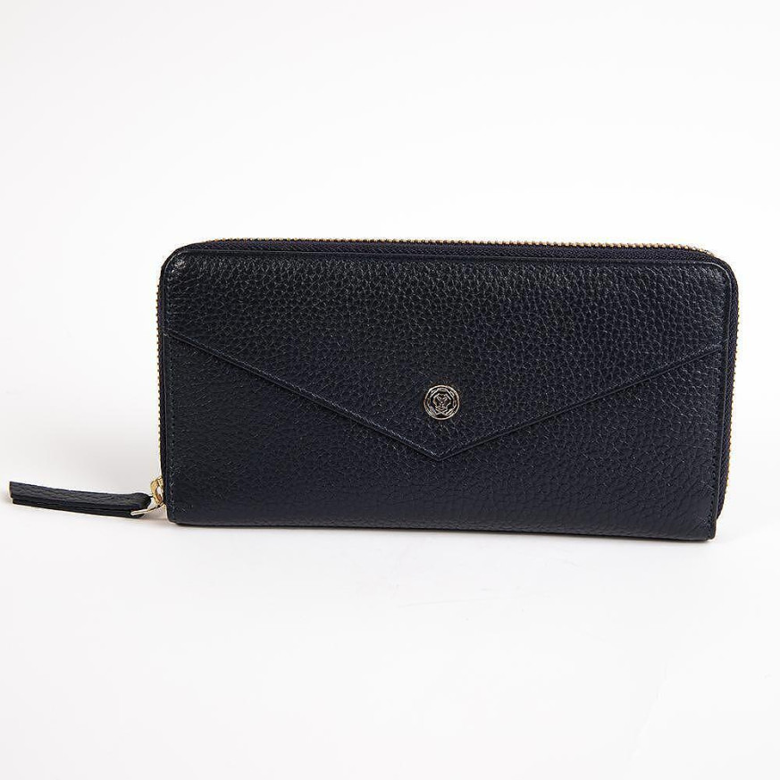 Материал: естествена кожа; Затваряне с тик-так (1 бр.) Цвят: син 12 отделения за карти; 1 двойно отделение за банкноти с цип; 1 отделение за документи; Доставя се в луксозна подаръчна кутия.