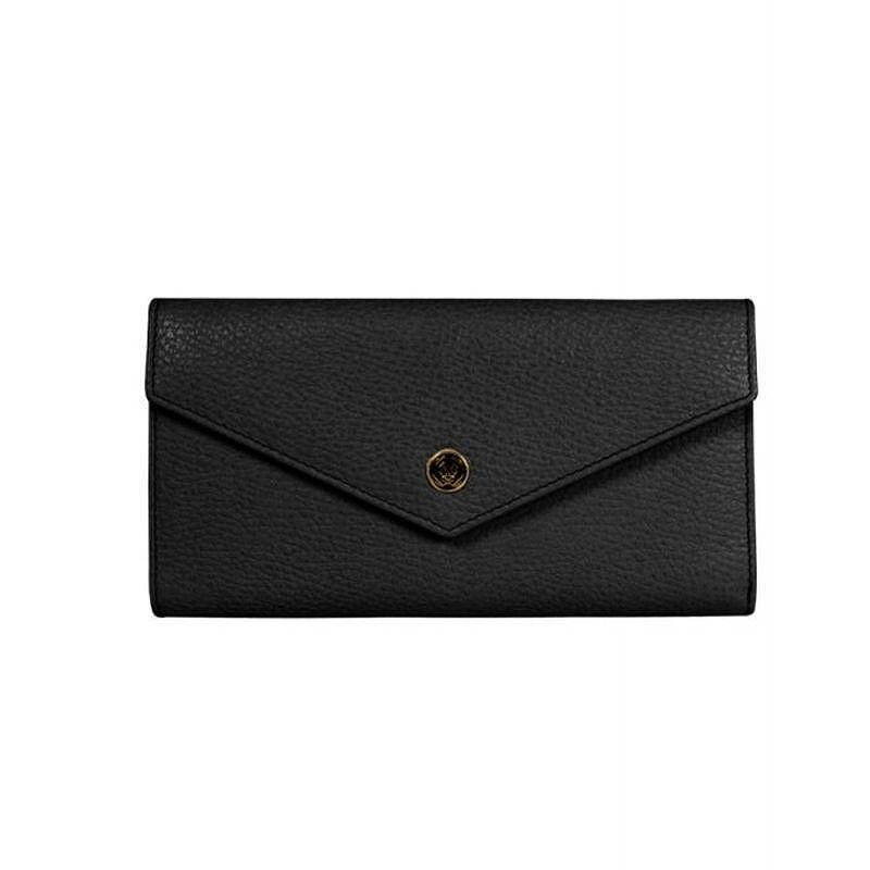 Материал: естествена кожа; Затваряне с тик-так (1 бр.) Цвят: черен 12 отделения за карти; 1 двойно отделение за банкноти с цип; 1 отделение за документи; Доставя се в луксозна подаръчна кутия.