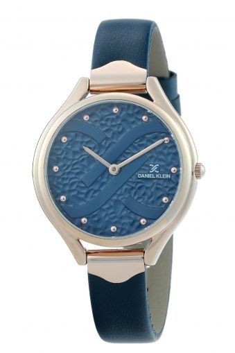Дамски часовник Daniel Klein с елегантна визия от колекцията Premium. Син аналогов дисплей. Стъкло минерал-кристал. Корпус изработен от висококачествена метална сплав. Тънка каишка от естествена кожа. Задвижва се от кварцов механизъм. Водоустойчивост 3 ATM - допускат се леки пръски, не се препоръчва обилно мокрене.