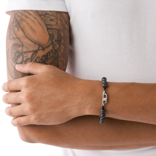 Мъжка Гривна Diesel DX1339040 Diesel DX1339040 от колекция D Logo e мъжка гривна в сребристо, изработена от неръждаема стомана и полускъпоценни камъни.
