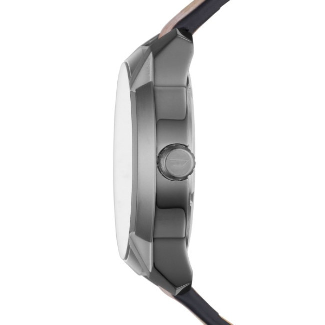 Часовник Diesel DZ1784 от серията Armbar впечатлява с масивен корпус Ø45 мм в черно-сива стомана и кафява кожена каишка. Циферблатът в тъмносин цвят комбинира отчитаеми черно-бели и червени индекси, заедно с дата в прозорец на 3 часа. Задвижва се от прецизен кварцов механизъм с три стрелки. Устойчив е на вода до 10 ATM и има минерално стъкло – идеален за ежедневна мъжка визия с доза динамичност.