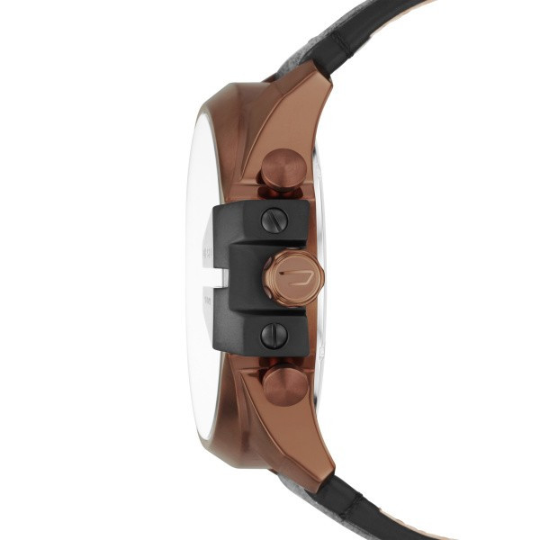 Мъжки Часовник Diesel DZ4459 Diesel DZ4459 от колекция Mega Chief e мъжки кварцов часовник с черен кръгъл циферблат, двуцветен корпус от неръждаема стомана с диаметър 51 mm и черна каишка 26 mm, изработена от естествена кожа.