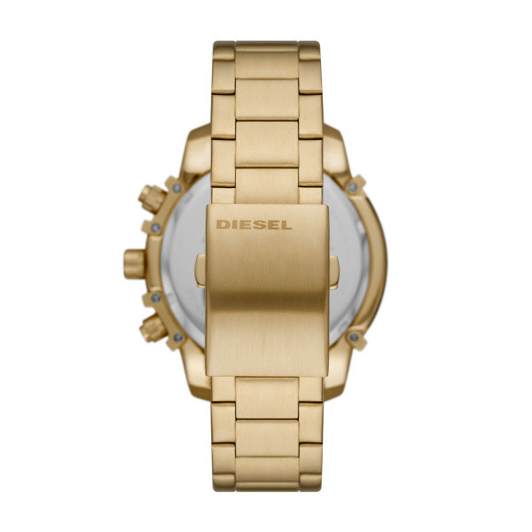 Мъжки Часовник Diesel DZ4573 Diesel DZ4573 от колекция Griffed e мъжки кварцов часовник със златист кръгъл циферблат, златист корпус от неръждаема стомана с диаметър 48 mm и златиста верижка 22 mm, изработена от неръждаема стомана.