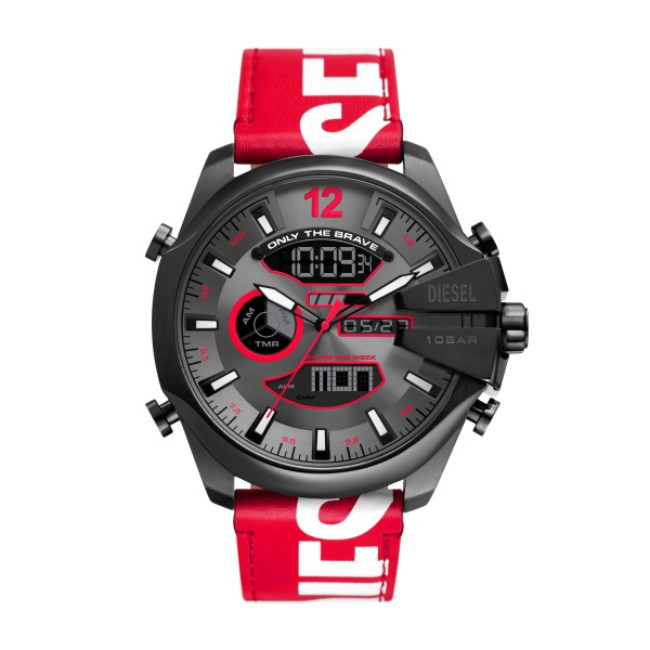 Мъжки Часовник Diesel DZ4647 Diesel DZ4647 от колекция Mega Chief e мъжки кварцов часовник със сив кръгъл циферблат, gunmetal корпус от неръждаема стомана с диаметър 51 mm и цветна каишка 26 mm, изработена от естествена кожа.