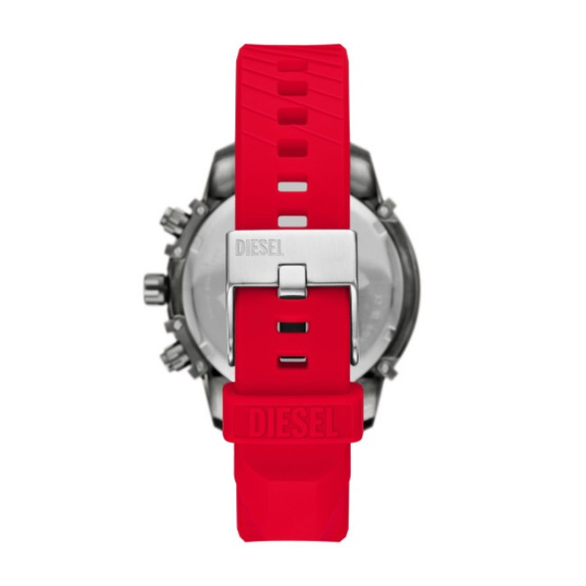 Мъжки Сет Diesel DZ4673SET Diesel DZ4673SET от колекция Griffed e сет от мъжки кварцов часовник и червена найлонова гривна с лого. Часовникът е с черен кръгъл циферблат, gunmetal корпус от неръждаема стомана с диаметър 48 mm и червена каишка 22 mm, изработена от естествена кожа.