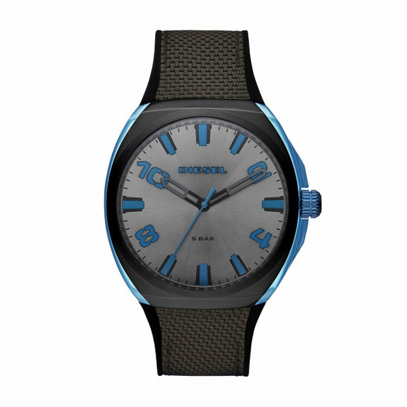 Diesel DZ1885 Stigg е мъжки кварцов часовник с корпус Ø48 мм, комбиниращ устойчивост и стил. Има матово сив sunray циферблат, с сини индекси и арабски цифри, което придава модерен контраст .
