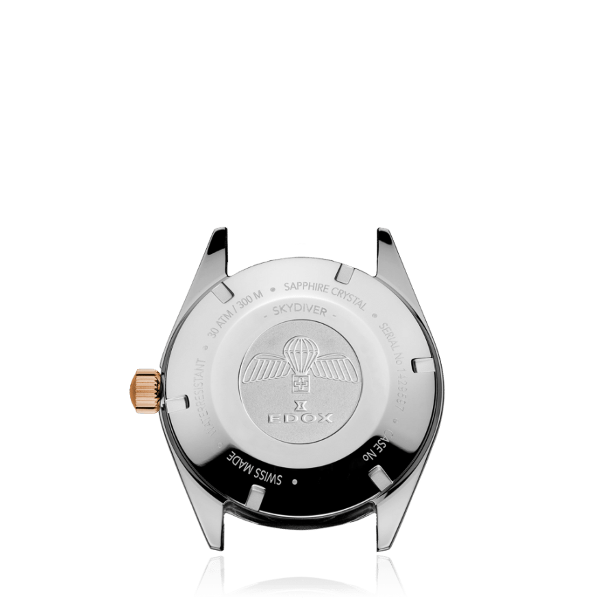 Часовник Edox SkyDiver 80131 357RNRC VIO е автоматичен модел от лимитирана серия с корпус от розово PVD покритие и лилав циферблат. С въртящ се керамичен безел, сапфирено стъкло и водоустойчивост до 300 м, този 38-милиметров унисекс модел съчетава елегантност и приключенски дух. Включва специална кутия и допълнителна кожена каишка.