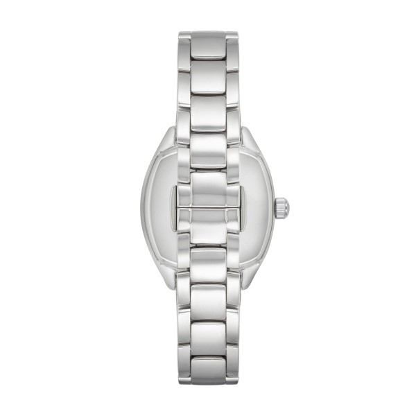 Emporio Armani AR11037 от колекция Gamma e дамски кварцов часовник с mop кръгъл циферблат, сребрист корпус от неръждаема стомана с широчина 28 mm и сребриста верижка 14 mm, изработена от неръждаема стомана.