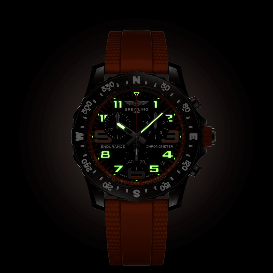 Проектиран да бъде едновременно лек часовник за спортисти и ежедневен спортен хронограф, Endurance Pro идеално съчетава висока прецизност и иновативна технология с цветен дизайн. Това е най-добрият часовник за свободното време. Проектиран за мъже и жени, чийто активен живот съчетава професионално мислене със спортен начин на живот, Endurance Pro е равен на предизвикателствата на строгата тренировка, но е достатъчно модерен за ежедневно носене. Endurance Pro включва ултра лек корпус Breitlight®, здрав материал, 3,3 пъти по-лек от титан и 5,8 пъти по-лек от неръждаема стомана. Немагнитен, термично стабилен и хипоалергенен, Breitlight® е силно устойчив на надраскване, сцепление и корозия. Освен това има докосване, което е по-топло от метала и леко текстуриран ефект, подчертаващ оригиналността на дизайна. Ексклузивно за Breitling, той е 100% произведен в Швейцария. Предлага се с набор от цветни циферблати и гумени каишки, които пасват на катарама Breitlight® с двоен танг, Endurance Pro може да се съчетае и с една от цветните каишки  Outerknown ECONYL® на Breitling от една част. Захранването на Endurance Pro е Calibre 82 на Breitling, COSC-сертифициран SuperQuartz™ хронограф, осигуряващ изключителна прецизност.