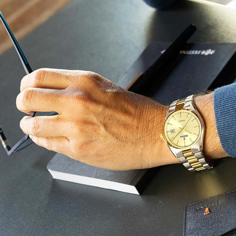 Часовник Festina F20554/3 – Класически мъжки модел със златна верижка и шампанско циферблат