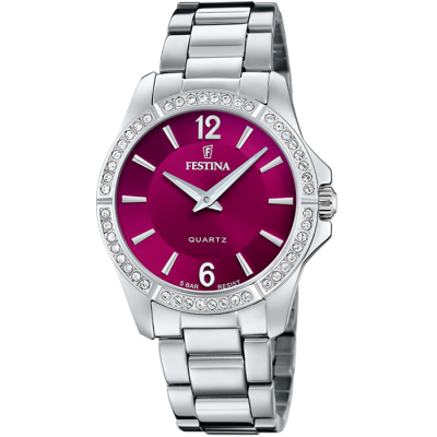 Festina F20593/2 – Дамски часовник с червен циферблат и кристали за изискан стил