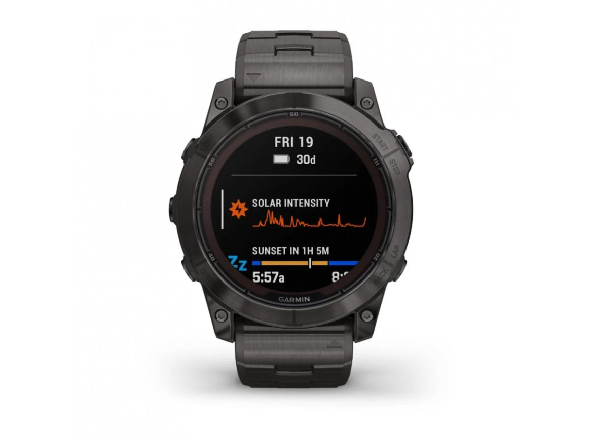| Живот на батерията | Смарт часовник: До 28 дни/37 дни със солар*; Режим на часовник с пестене на батерия: До 90 дни/ 1+ година със солар*; Само GPS: До 89 часа/122 часа със солар**; Всички сателитни системи: До 63 часа/77 часа със солар*; Всички сателитни системи и Multi-band: До 36 часа/ 41 часа със солар**; Всички сателитни системи и музика: До 16 часа; Max Battery GPS: До 213 часа/ 578 часа със солар**; Expedition GPS: До 62 дни/ 139 дни със солар*; *Слънчево зареждане, като се предполага целодневно носене с 3 часа на ден навън в 50,000 lux условия; **Слънчево зареждане, при условие, че се използва в 50,000 lux условия; |