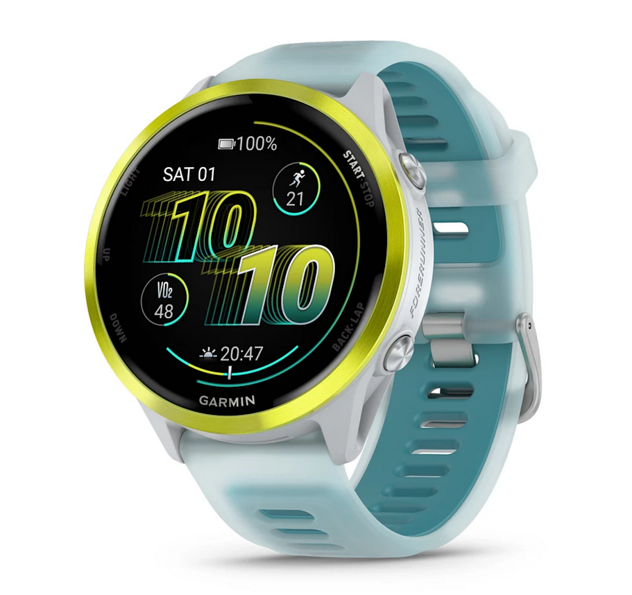 Garmin Forerunner 570 AMP Yellow е идеален за атлети с енергия и цел. Яркият алуминиев корпус в AMP Yellow и контрастната каишка в Translucent Whitestone & Turquoise го правят не просто инструмент, а изявление.