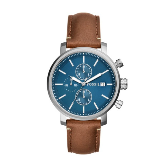 Мъжки Часовник Fossil BQ2847   Fossil BQ2847 от колекция Rhett e мъжки кварцов часовник със син кръгъл циферблат, сребрист корпус от неръждаема стомана с диаметър 42 mm и кафява каишка 20 mm, изработена от pro-planet кожа.