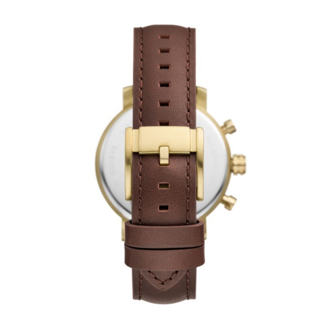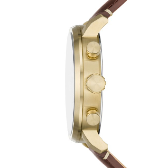 Мъжки Часовник Fossil BQ2848   Fossil BQ2848 от колекция Rhett e мъжки кварцов часовник със син кръгъл циферблат, златист корпус от неръждаема стомана с диаметър 42 mm и кафява верижка 20 mm, изработена от неръждаема стомана.